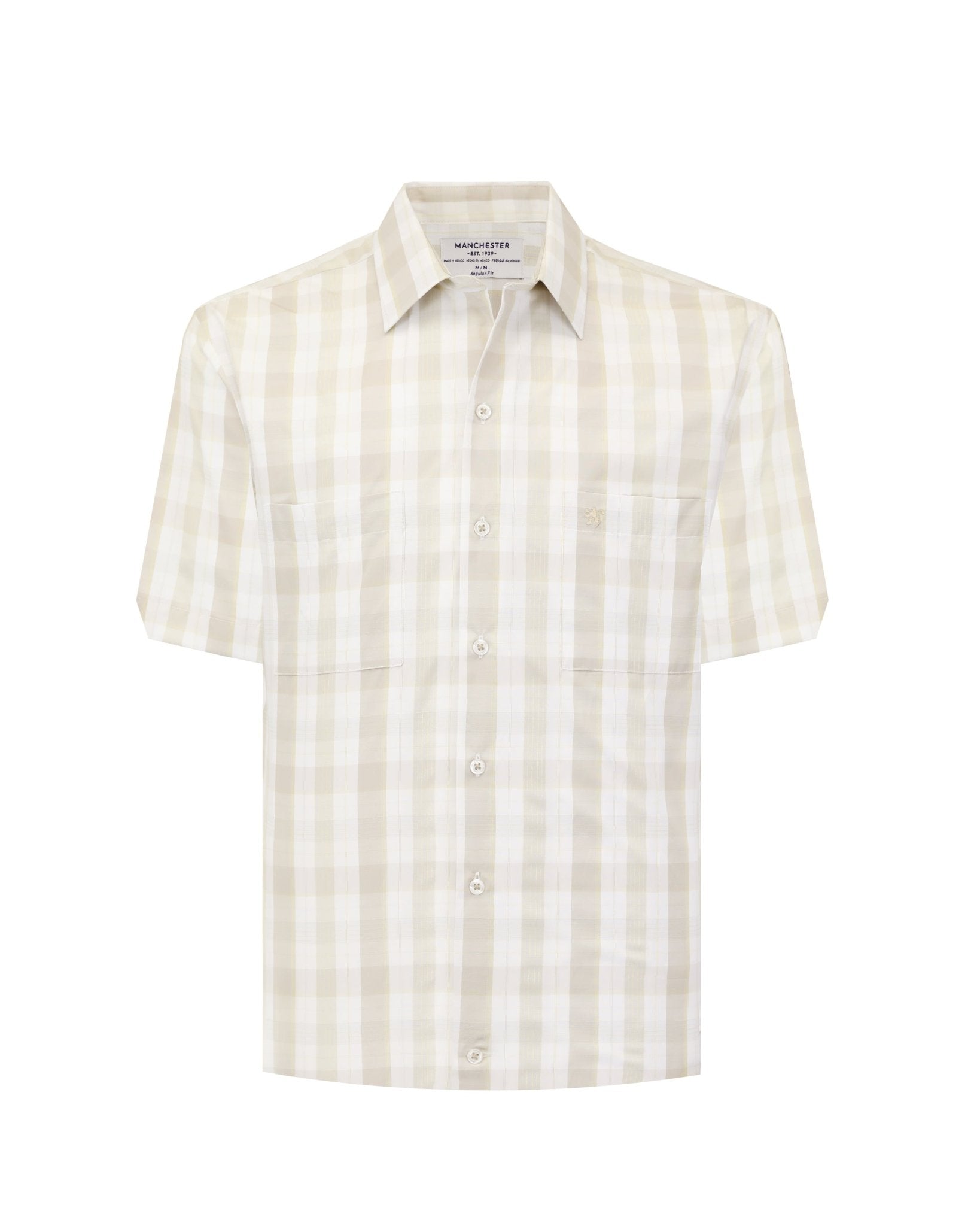 La Camisa Casual de Cuadros Estilo Gingham de Manchester, elaborada con 65% poliéster y 35% algodón, combina suavidad y resistencia para un uso diario impecable. Su diseño de manga corta con doble bolsillo resalta un aire tradicional con practicidad, ideal para días de oficina relajados, comidas familiares o escapadas de verano con un toque artesanal Manchester.