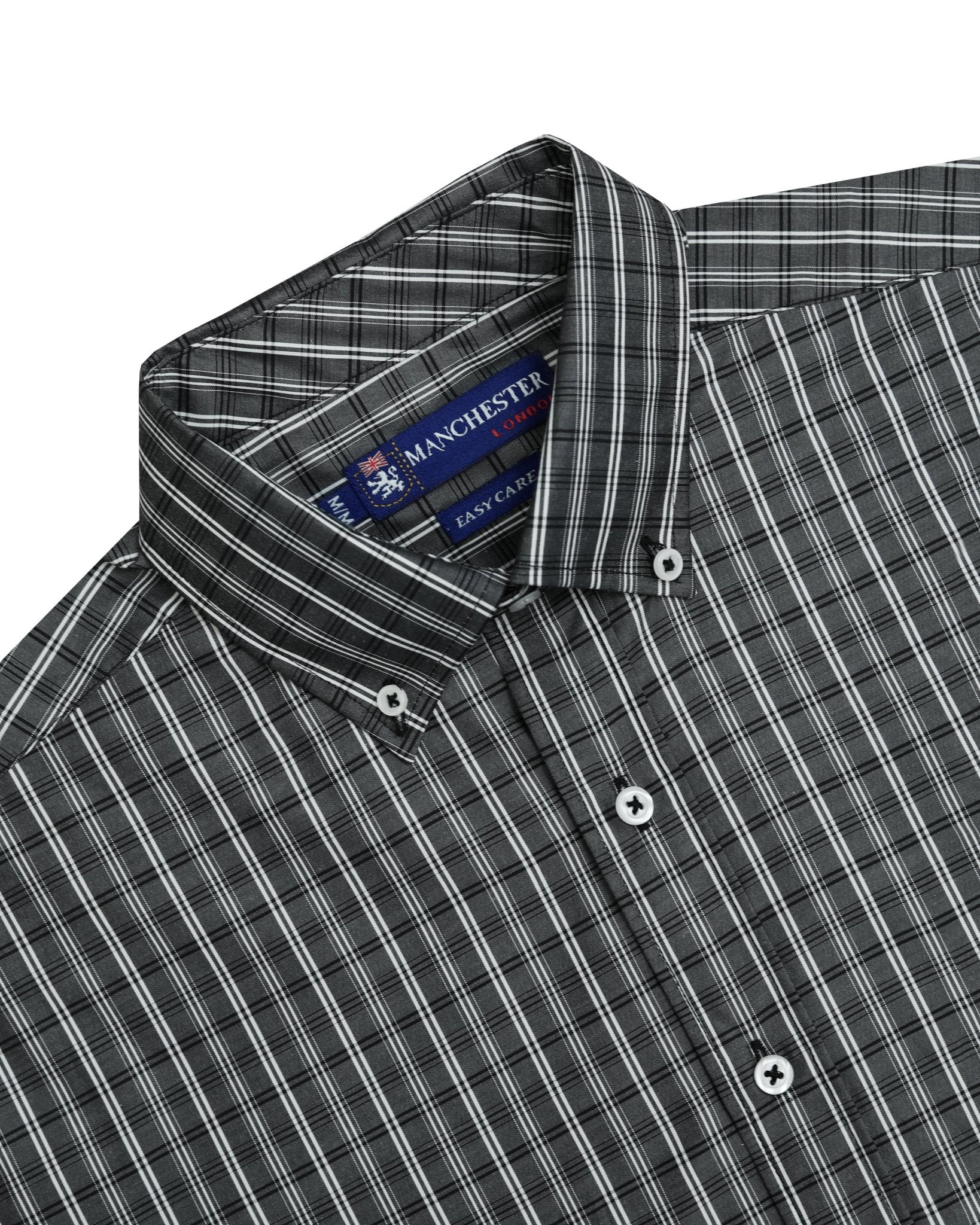La Camisa Casual Button Down de Manchester, elaborada con 65% poliéster y 35% algodón, ofrece una caída ligera y cómoda que acompaña con naturalidad cualquier día. Su diseño a cuadros y el cuello abotonado aportan un aire tradicional que realza la presencia sin esfuerzo.