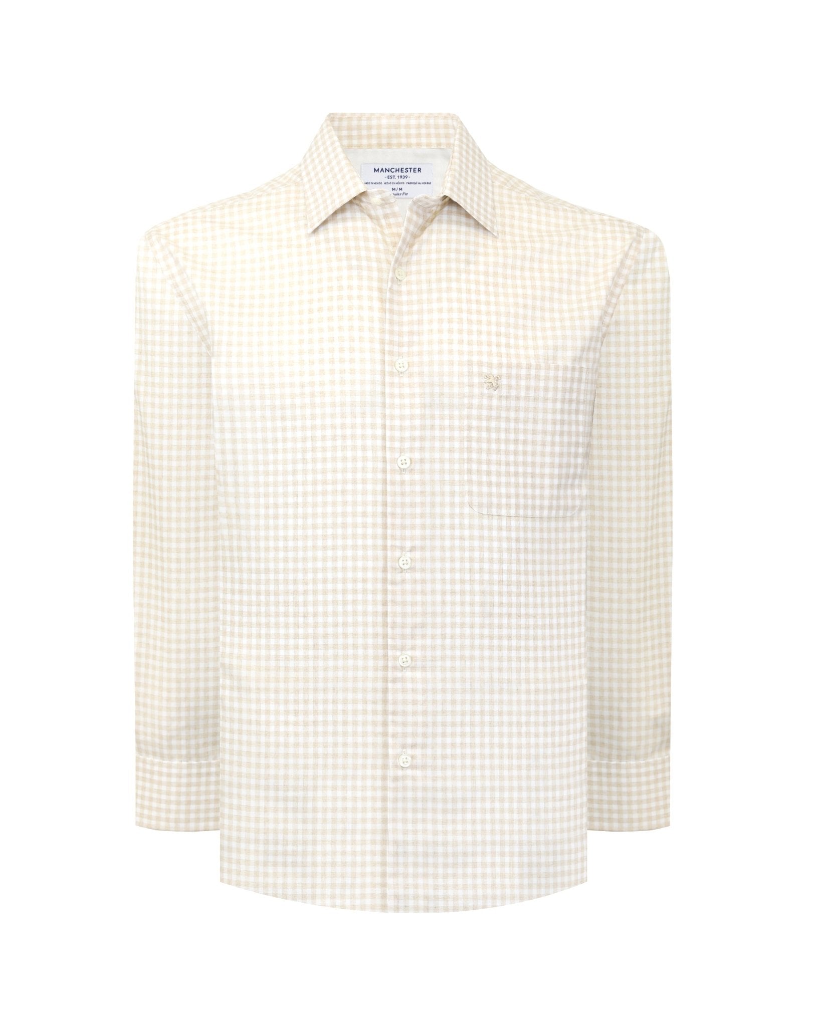 La Camisa Semi-Casual de Manchester con diseño geométrico sutil, elaborada en 100% algodón wrinkle free, ofrece una textura extraordinariamente suave y una apariencia siempre pulida. Su manga larga y bolsillo único combinan elegancia y comodidad, ideal para oficina, reuniones importantes o eventos donde la presentación es clave con el toque artesanal Manchester.